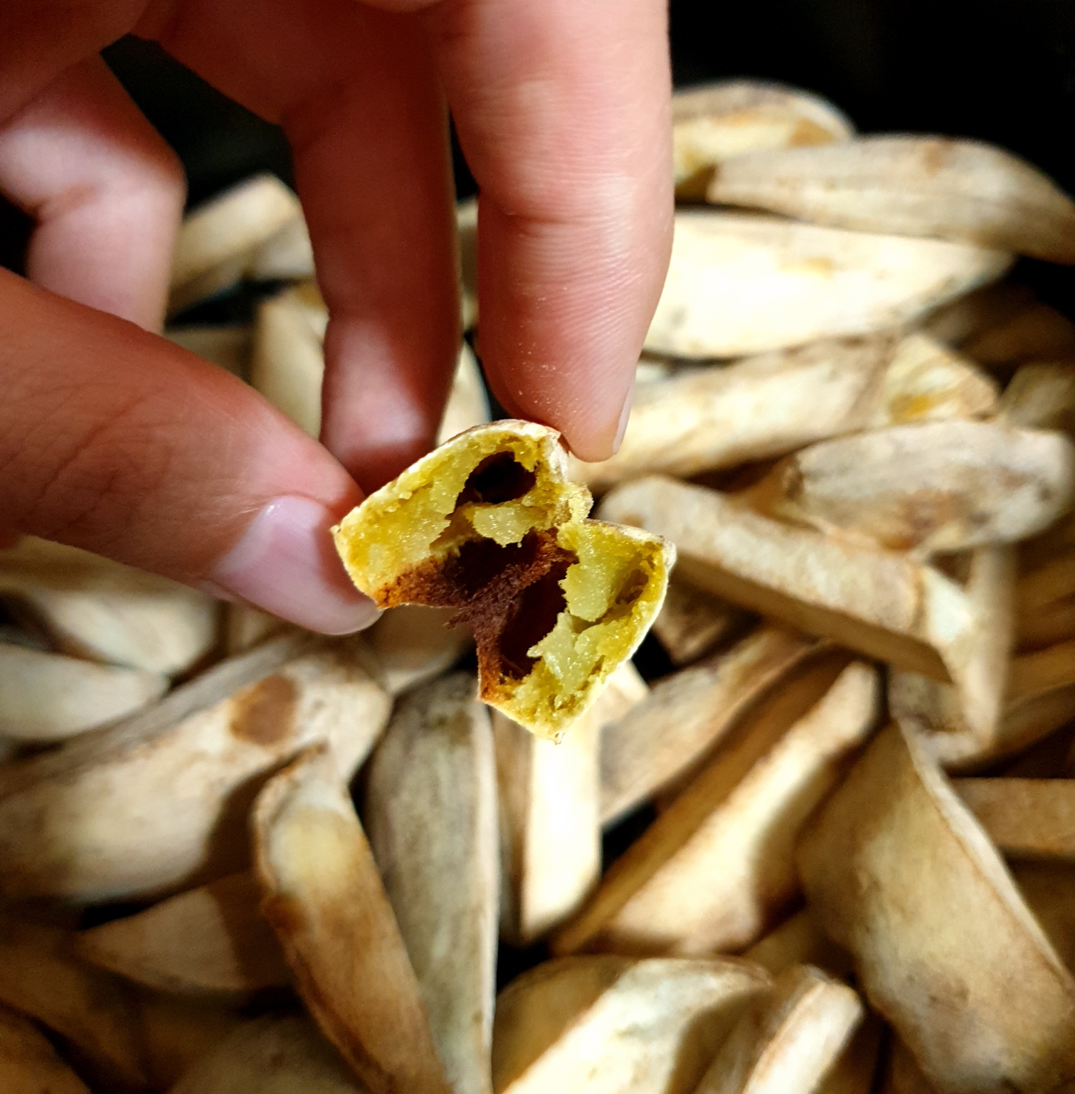 잘 익은 것은 잘 익었는데 어떤 건 타서 쓴맛이 나고 쉽지 않다.