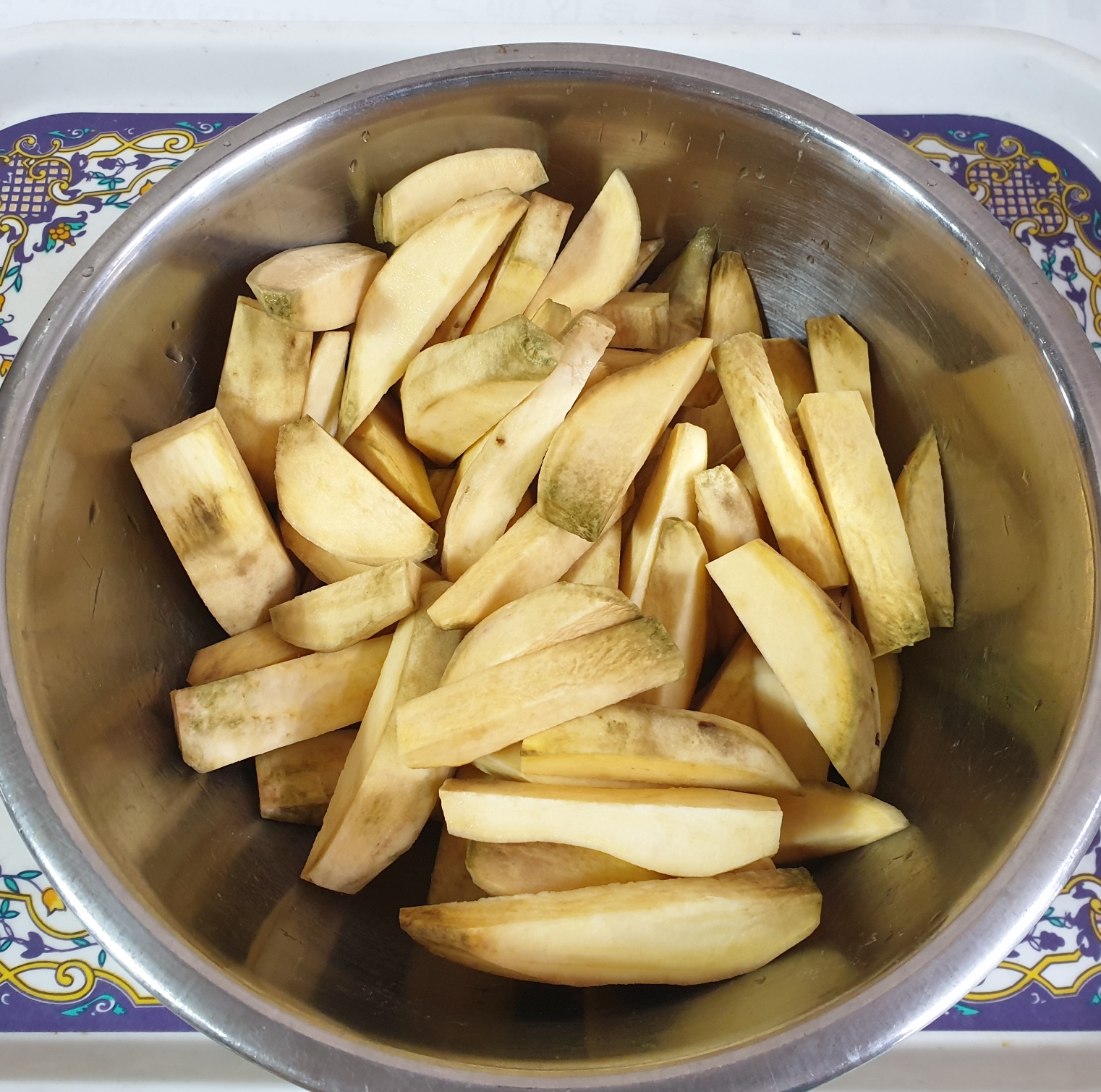 나머지 고구마를 깨끗하게 씻어서 껍질을 깎아주고 먹기 좋은 크기로 준비해준다.