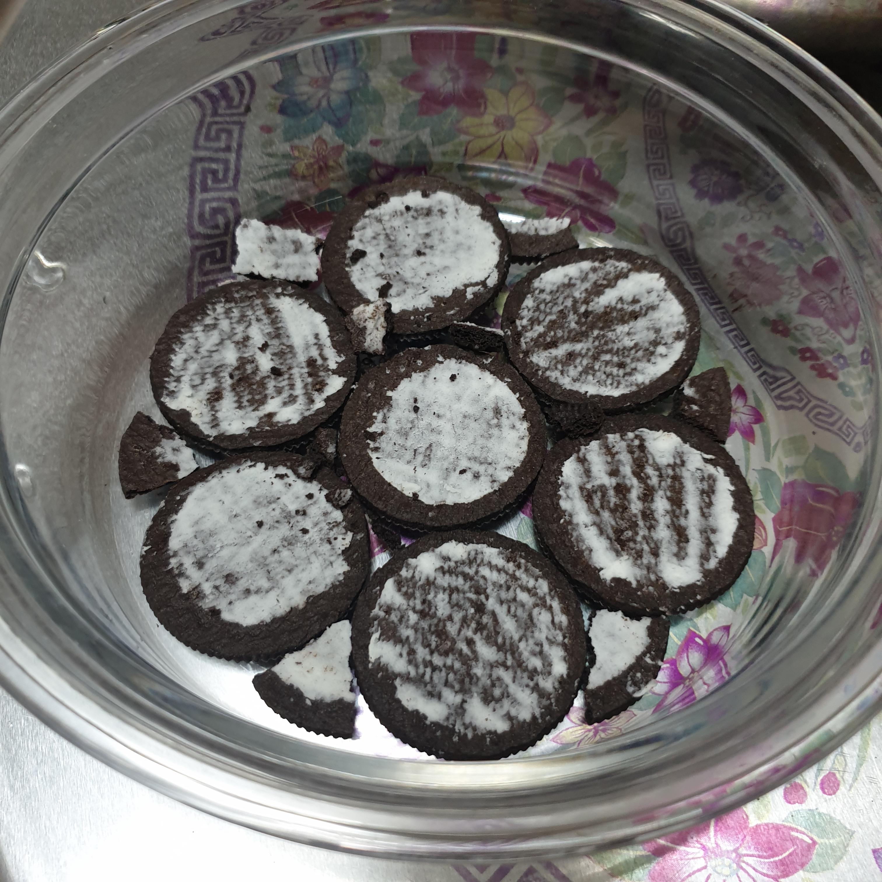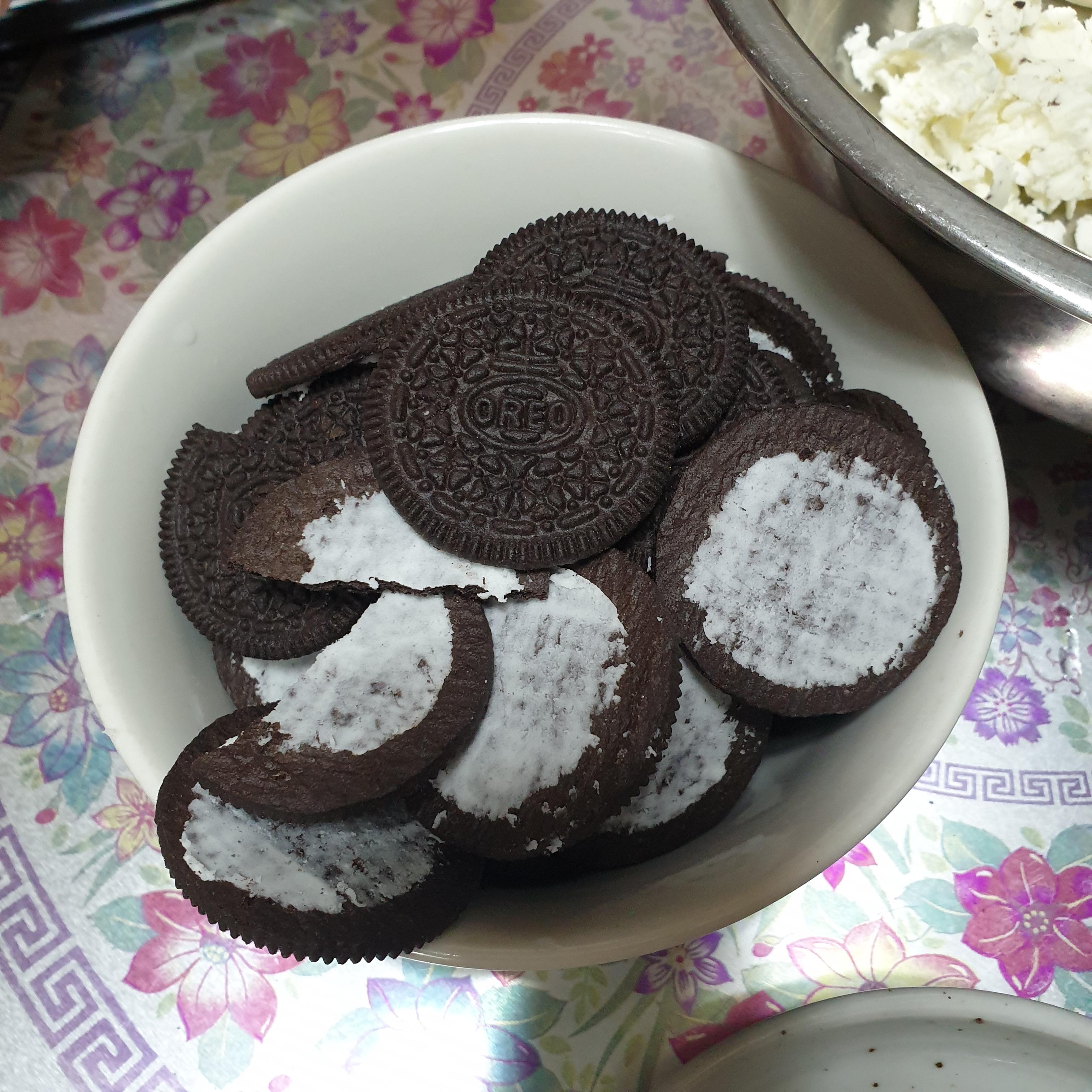 오레오과자의 크림과 쿠키 부분을 분리해준다.