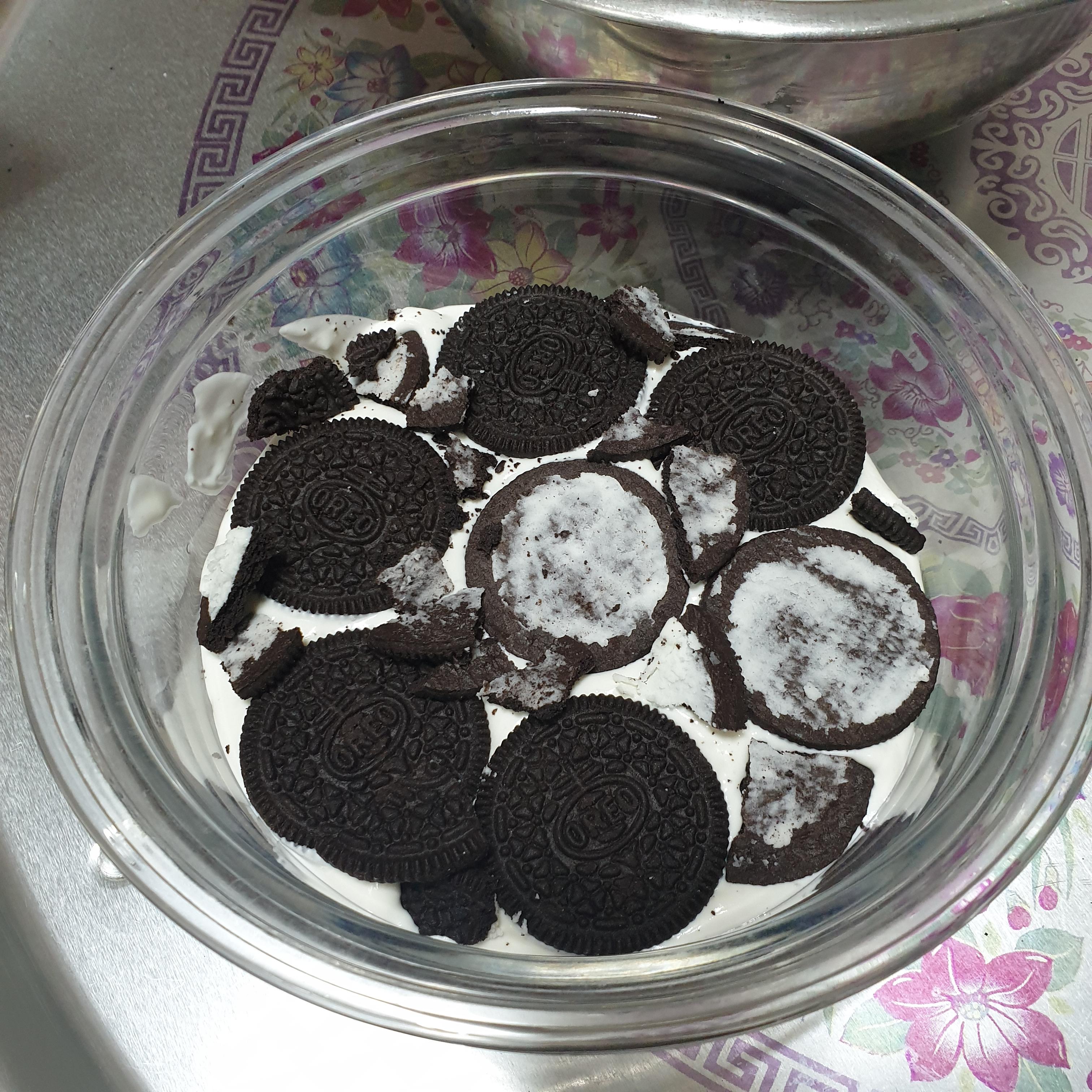 이제는 오레오 아이스박스를 만들 용기에 쿠키를 잘 넣고