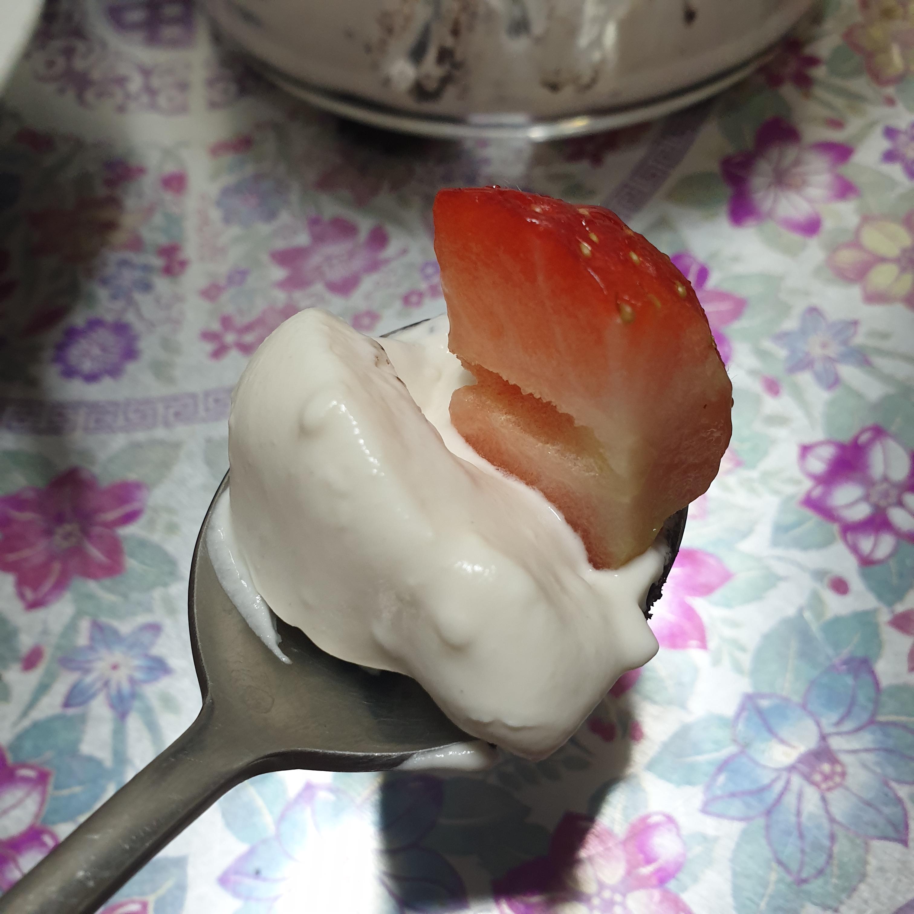 그래서 집에 있던 딸기와 함께 먹었다.