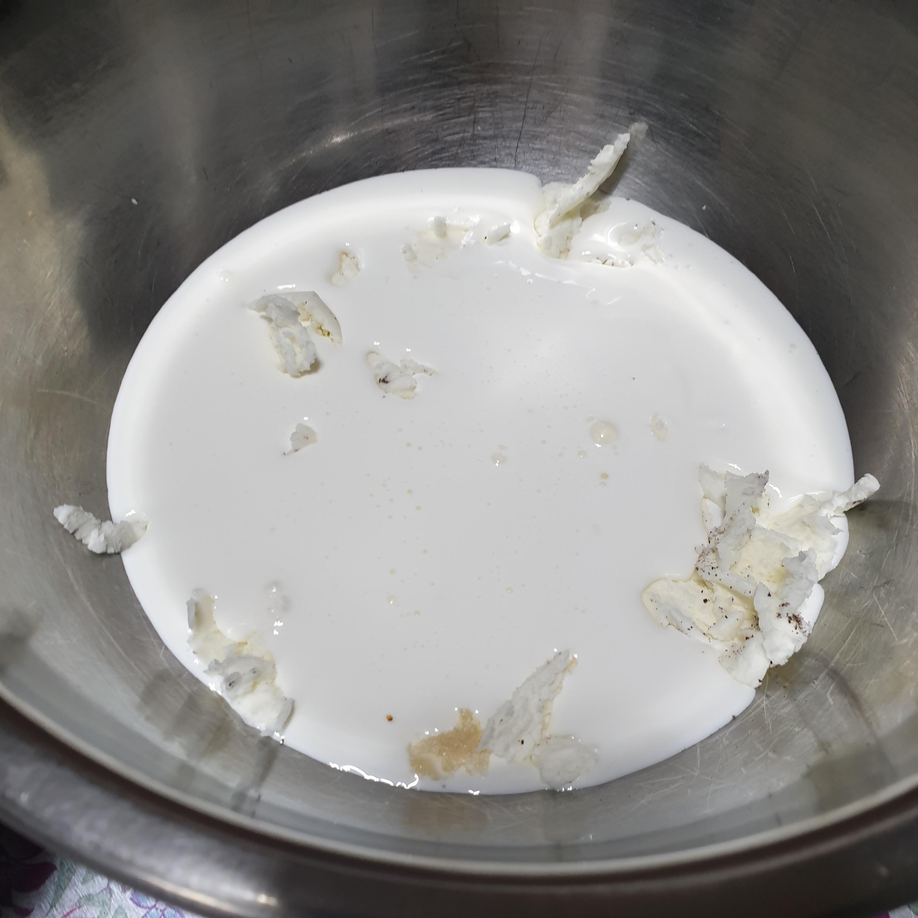 원래는 크림치즈를 단독적으로 섞어 크림화를 시켜준 뒤에 생크림과 섞어주면 더 잘 섞이고 덩어리가 덜 생긴다.