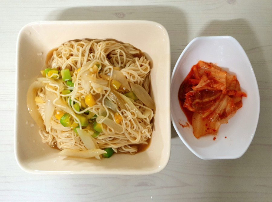 그런데 오랜 장마때문인지 배추김치가 아니라 양배추김치같았다.