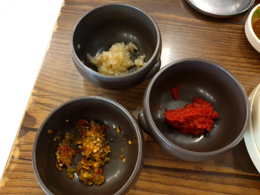 국물에 취향에 맞게 첨가해 먹을 수 있는 양념들이다.
